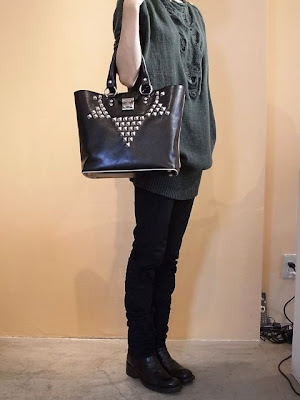 スタッズを星形の様に配したトートバッグ。